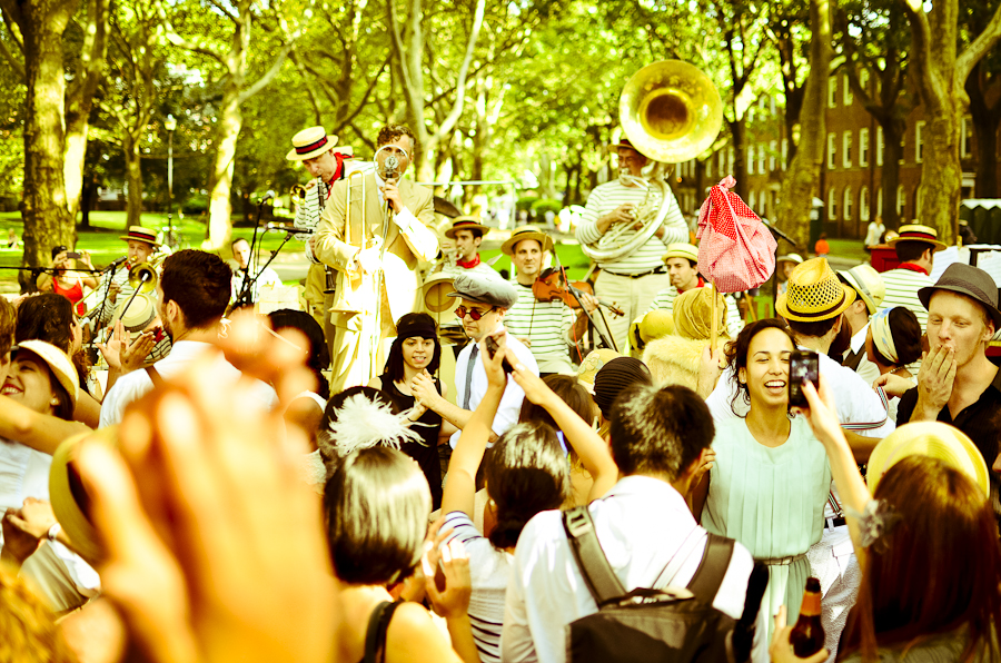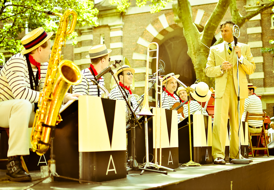 Today I stepped back in the 1920s by going swinging at the 7th Annual Jazz Age Lawn Party on New York’s Governors Island. I joined my friend Claire along with some of her coworkers and friends for the festivities that featured an all you can drink assortment of beers, wines and sangrias.